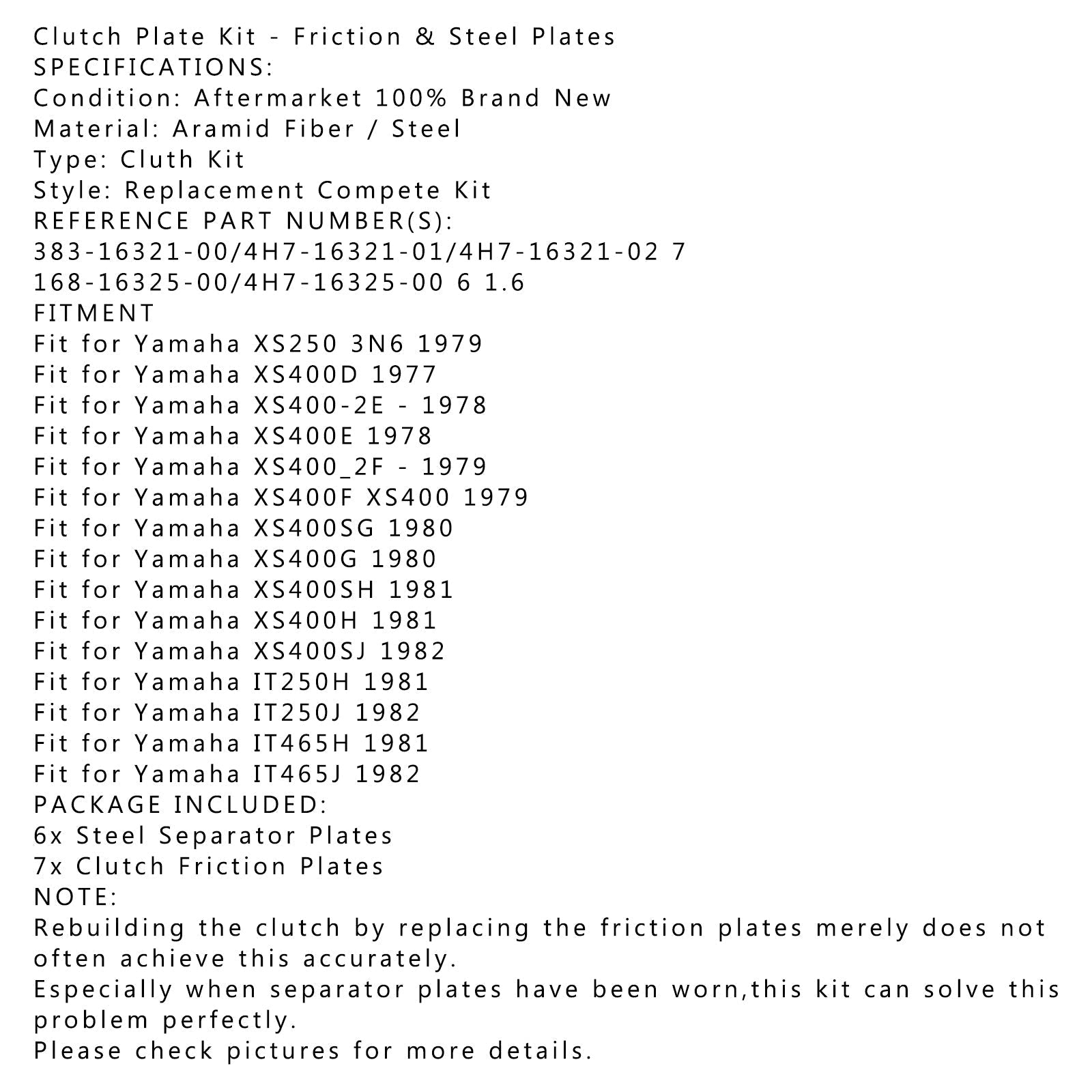 Kit de embrague de acero y placas de fricción para Yamaha XS250 XS400 IT250 IT465 genérico