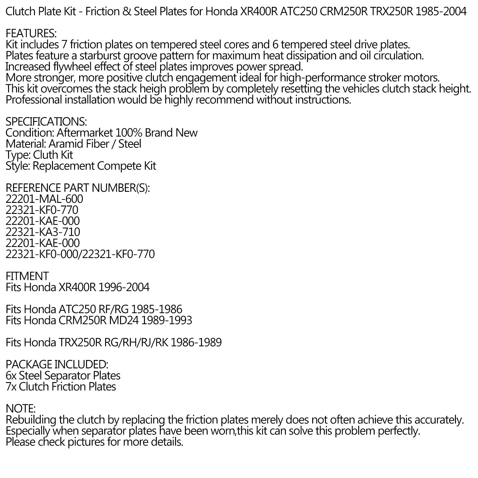 Kit de placa de embrague - Placas de fricción y acero para Honda XR400R ATC250 CRM250R TRX250R 1985-2004