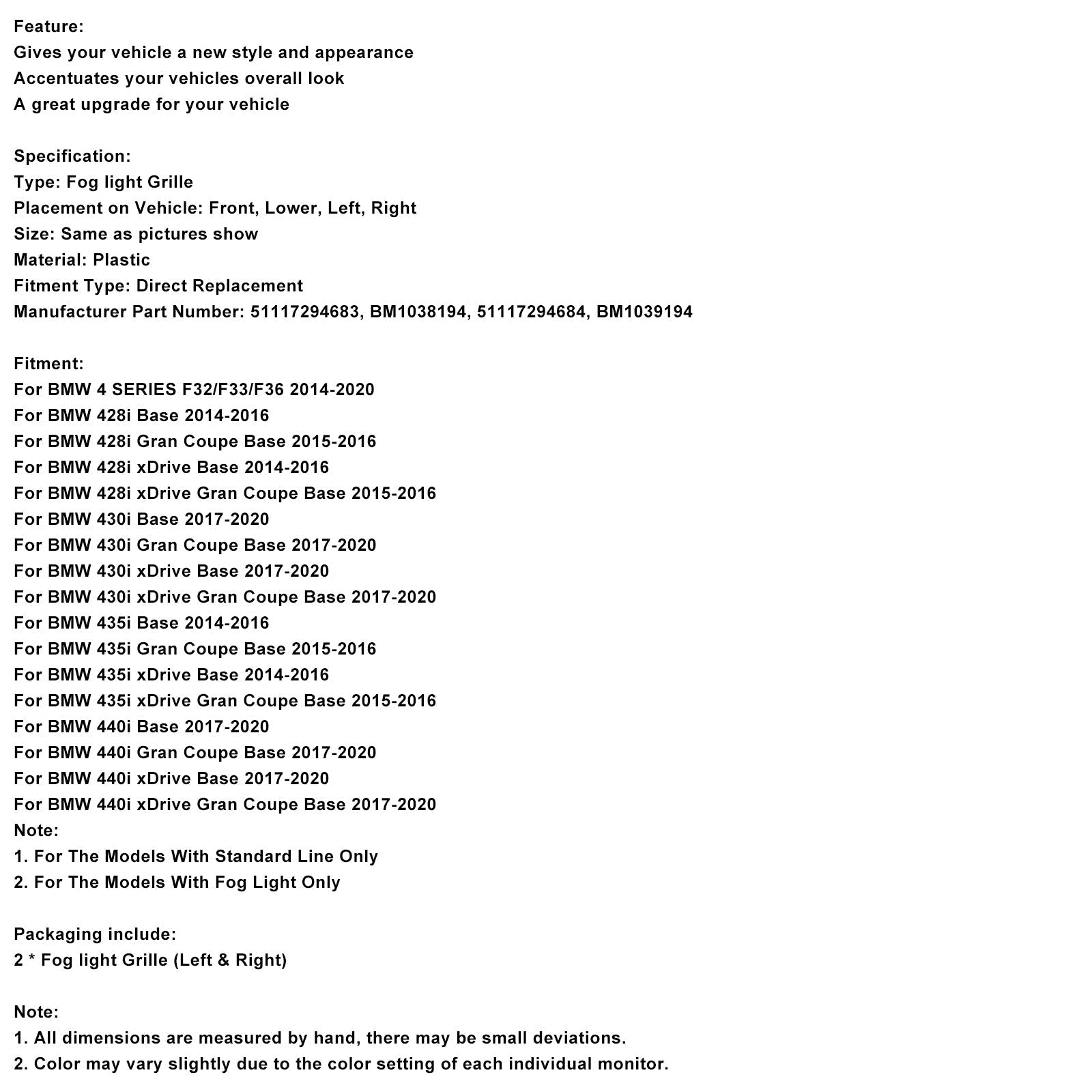 Fog Lamp Light Cover Insert Grill Grille Fit BMW 4 SERIES F32 428i 2014-2020