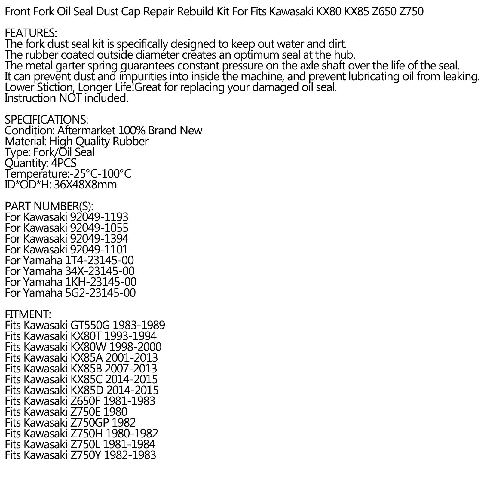 Kit de reconstrucción de reparación de tapa antipolvo de sello de aceite de horquilla delantera para Kawasaki KX80 KX85 Z650 Z750