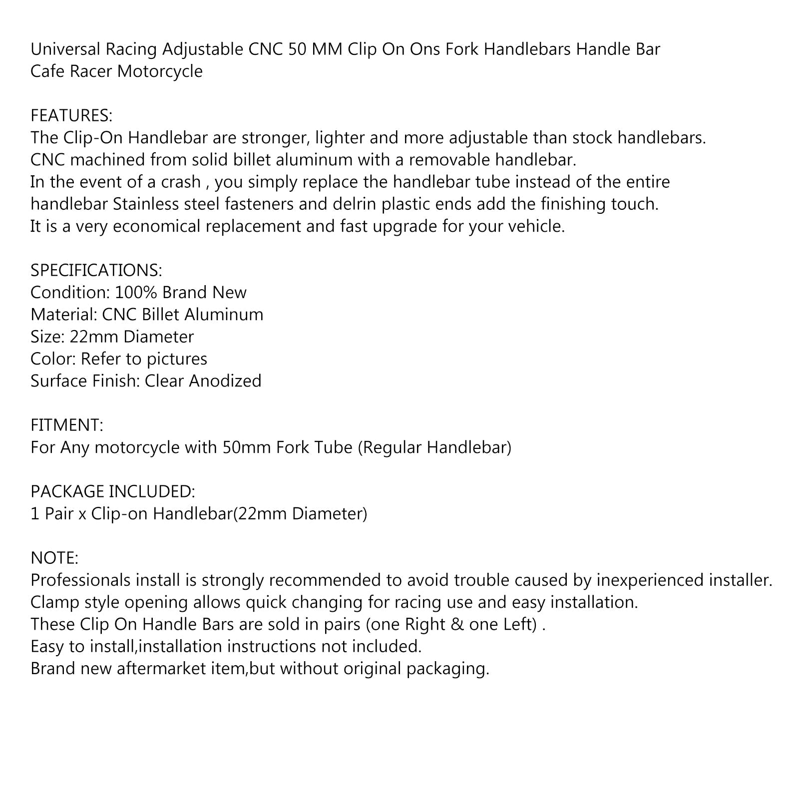 Cafe Racer CNC 7/8 Manillar Racing Ajustable 50mm Clip En Horquilla Motocicleta Genérico