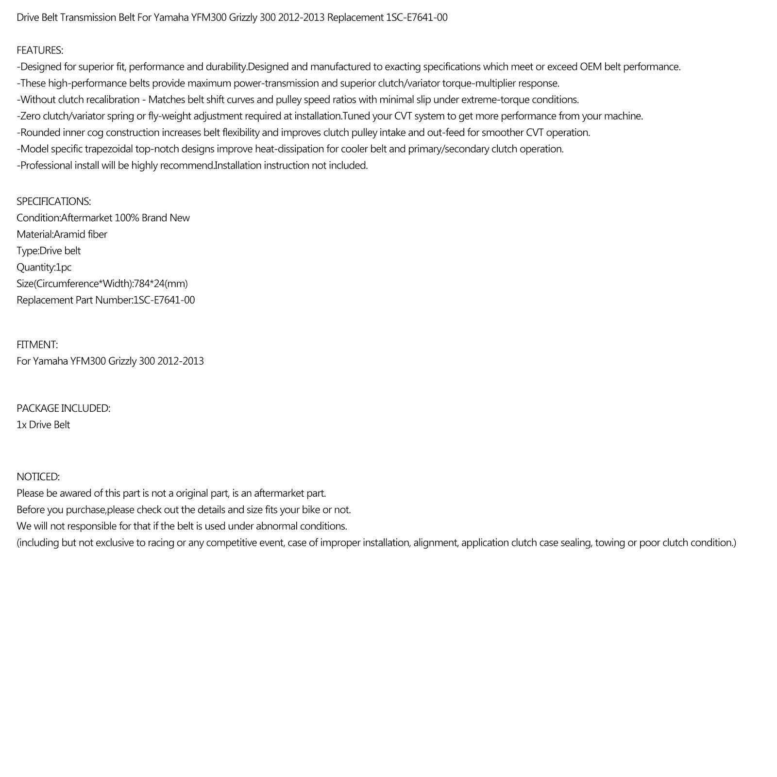 Correa de transmisión 784OC x 24W para Yamaha YFM300 Grizzly 300 2012-2013 P/N.1SC-E7641-00 Genérico