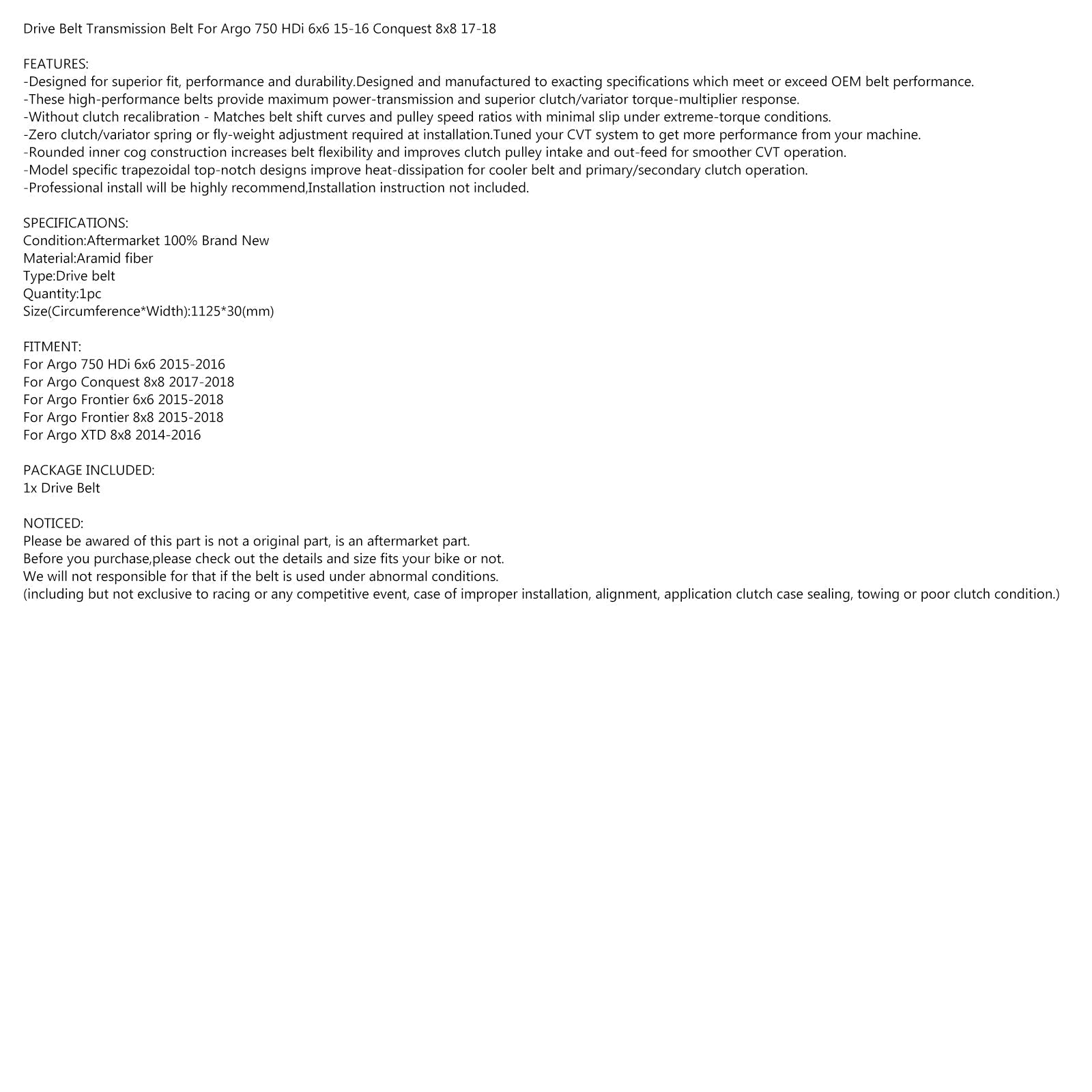 Correa de transmisión para Argo 750 HDi 6x6 2015-2016 Conquest 8x8 17-18 Frontier 6x6 15-18 Genérico