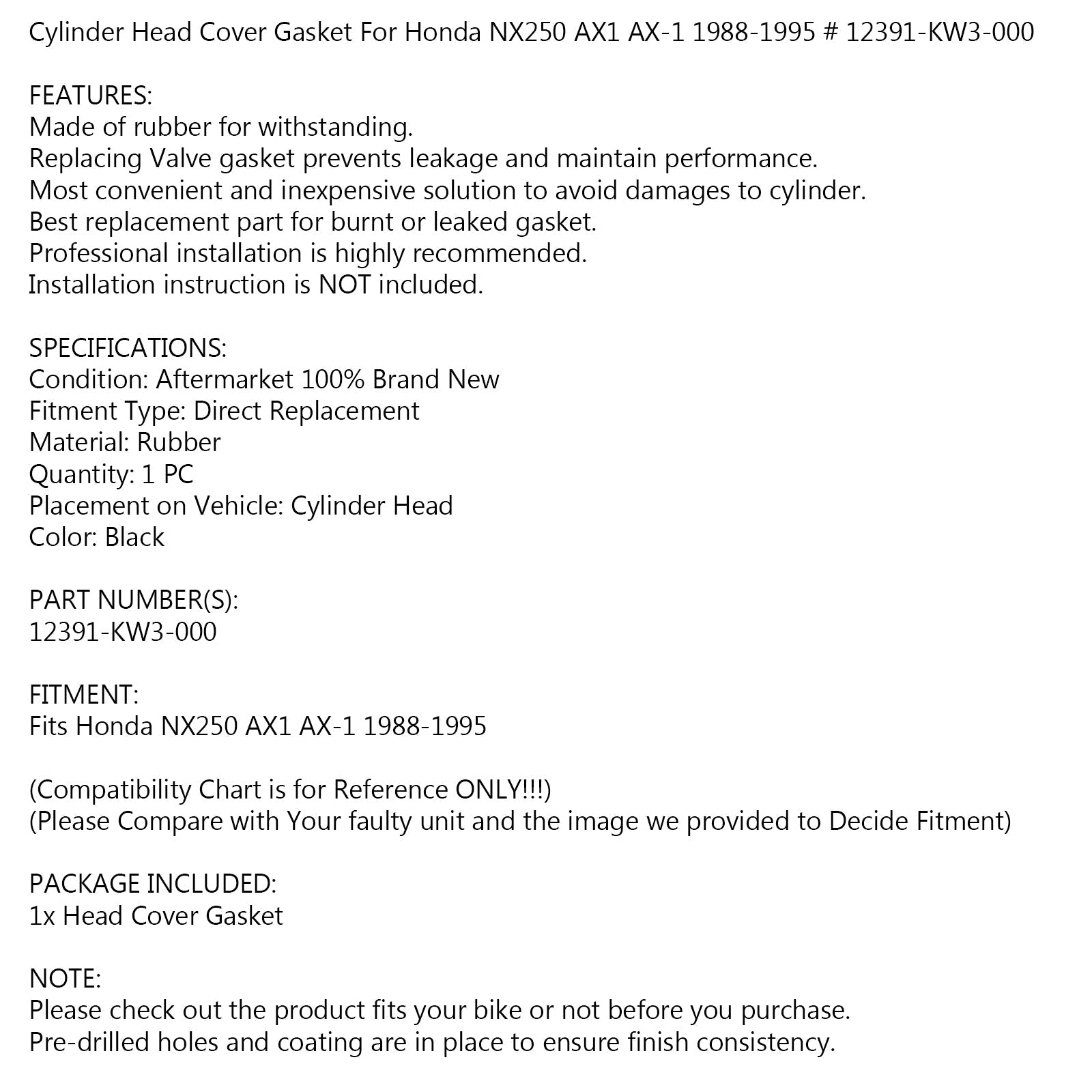 Junta protectora de culata para Honda NX250 AX1 AX-1 1988-1995 # 12391-KW3-000