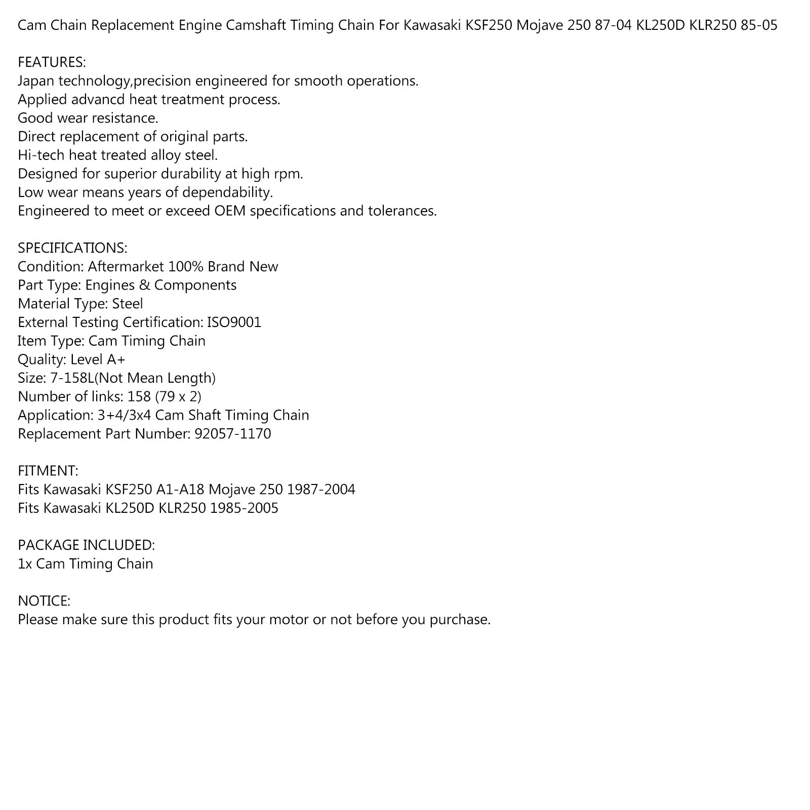 Cadena de levas 158 eslabones para Kawasaki 90-05 KLR250 85-89 KL250 87-04 KSF250 MOJAVE genérico
