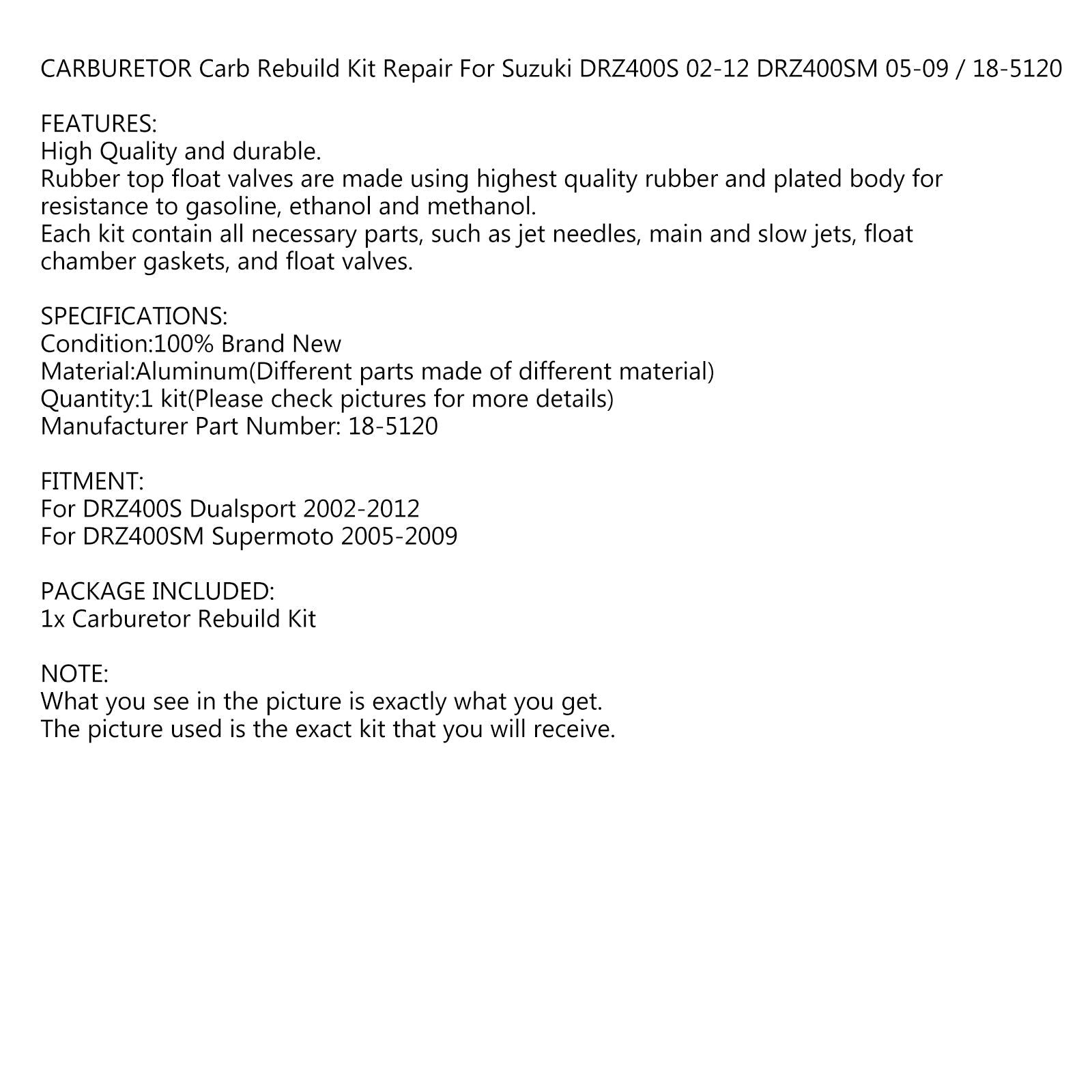 Kit de reconstrucción de carburador para Suzuki DRZ400S 02-12 DRZ400SM 05-09 / 18-5120