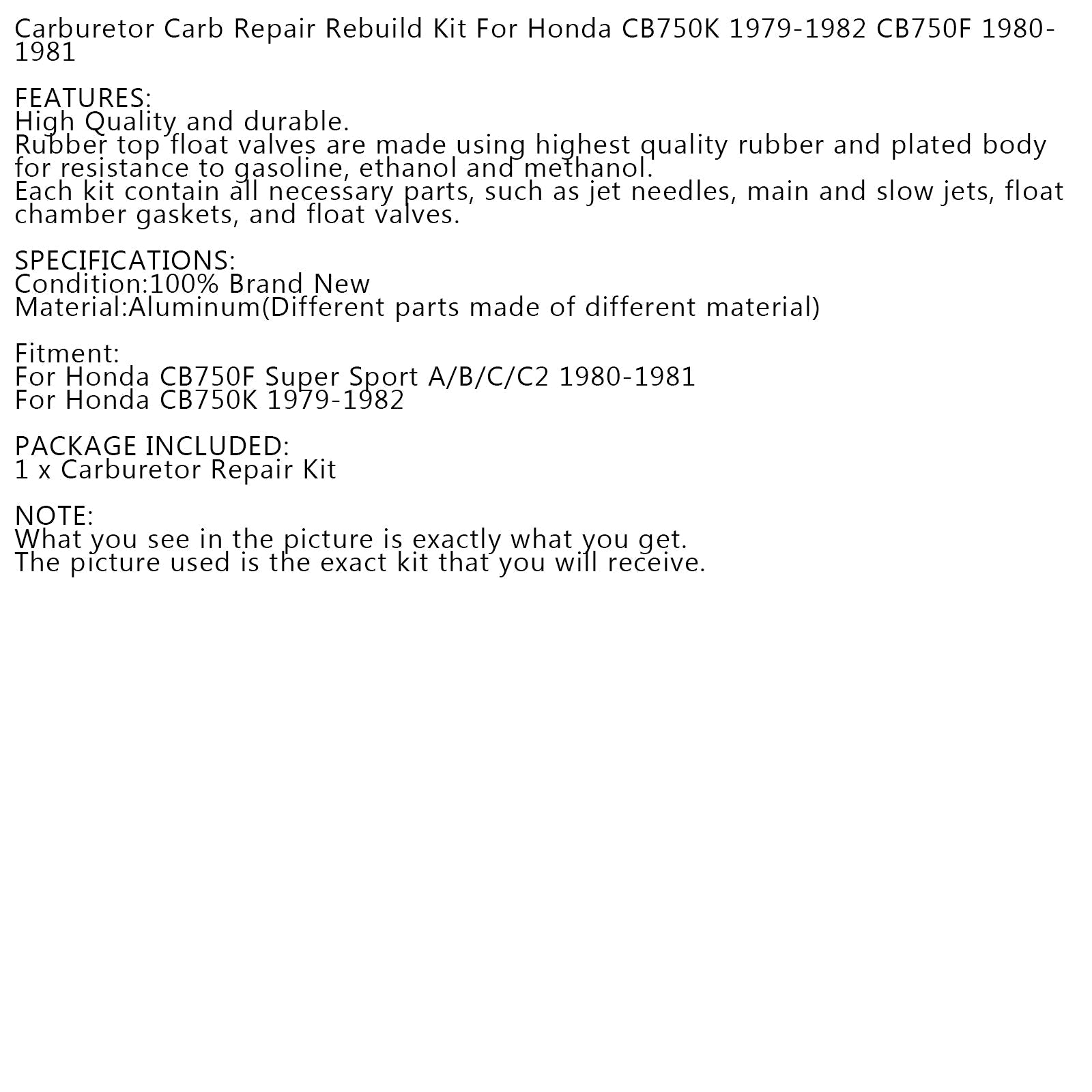 Kit de reconstrucción de reparación de carburador para Honda CB750K 1979-1982 CB750F 1980-1981 genérico