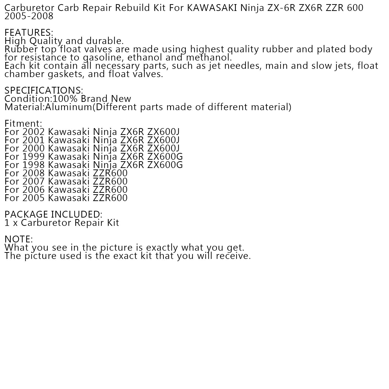 Kit de reconstrucción de reparación de carburador para Kawasaki ZZR600 2005-2008 Ninja ZX6R ZX600J/G genérico