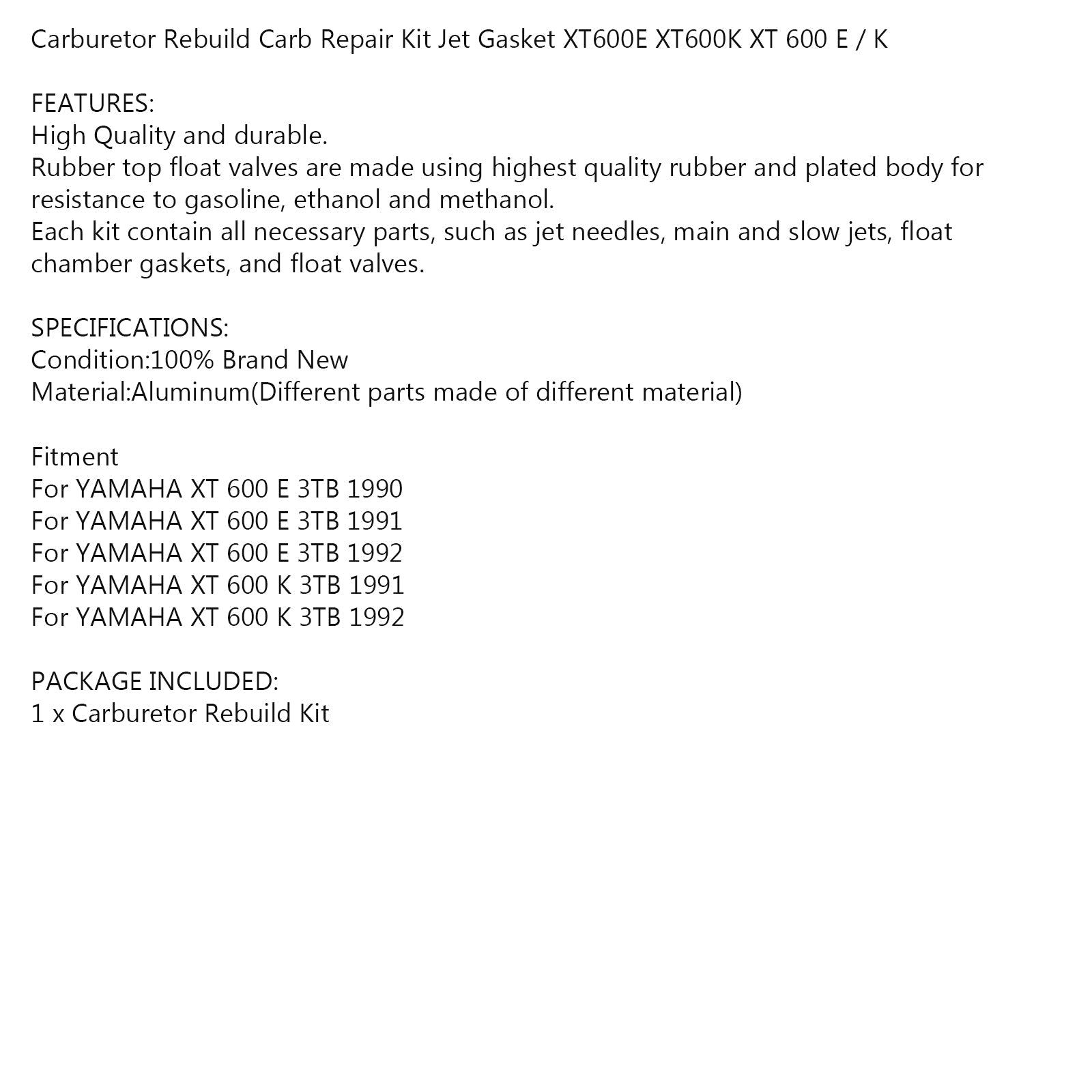 Juego de reparación de carburador Jet Kit para YAMAHA XT600 XT 600 E / XT 600 K 90-92 genérico