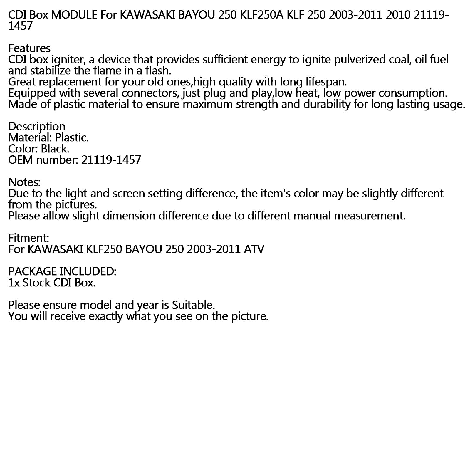 Módulo de caja CDI para KAWASAKI BAYOU 250 KLF250A KLF 250 2003-2011 2010 21119-1457 genérico