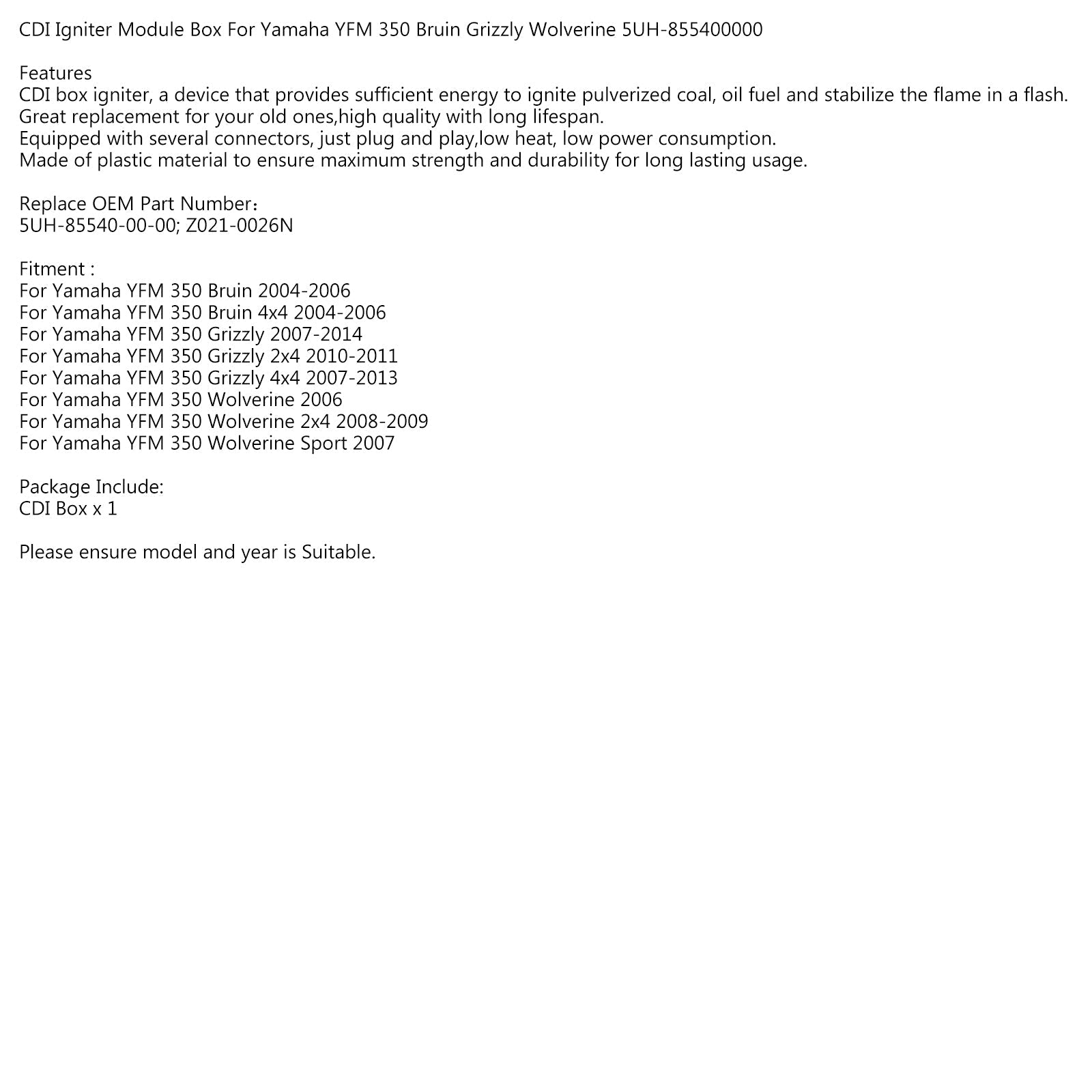 Caja de módulo de encendedor CDI para Yamaha YFM 350 Bruin Grizzly Wolverine 5UH-855400000