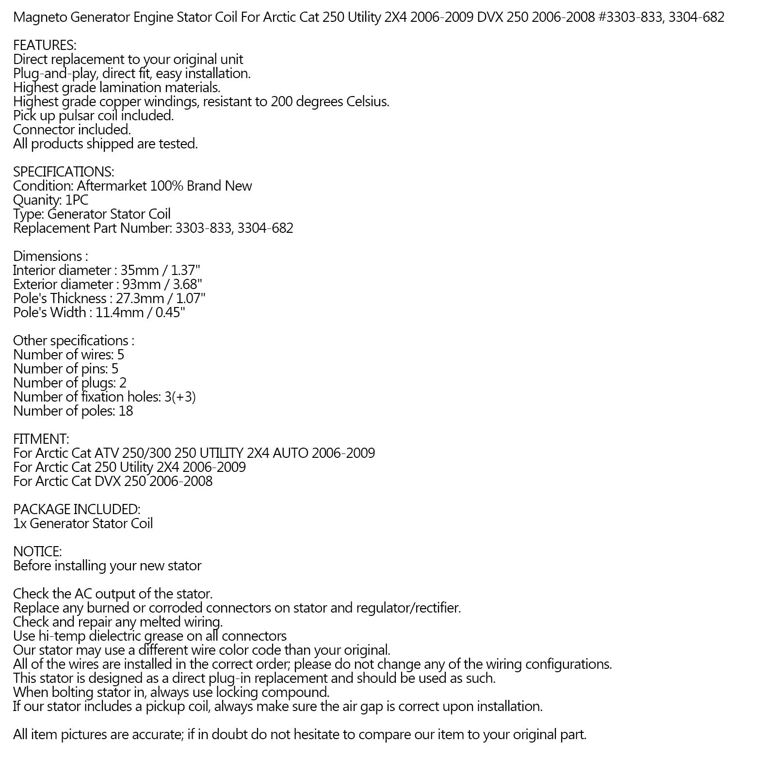 Generator Stator For Arctic Cat 06-09 ATV 250/300 UTILITY 2x4 3303-833 3304-682