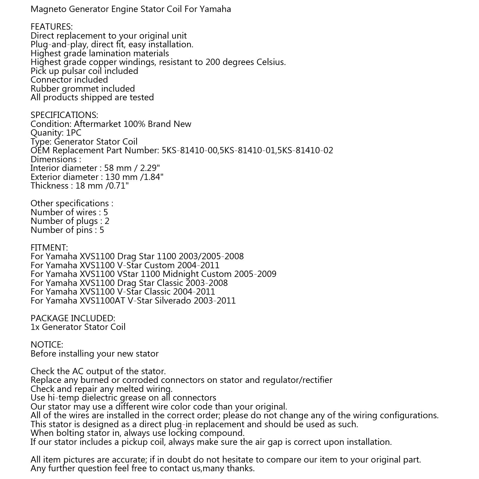 Generator Stator Coil For Yamaha XVS1100 XVS 1100 Vstar Classic Custom 2003-2011 Generic